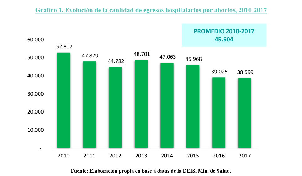 Asimismo, los últimos datos disponibles de la Dirección de Estadística e Información de Salud (DEIS), dependiente del Ministerio de Salud de Nación, arrojan que, en promedio, entre 2010 y 2017 se produjeron en el sistema público 45.604 egresos hospitalarios por abortos incompletos por año en nuestro país.