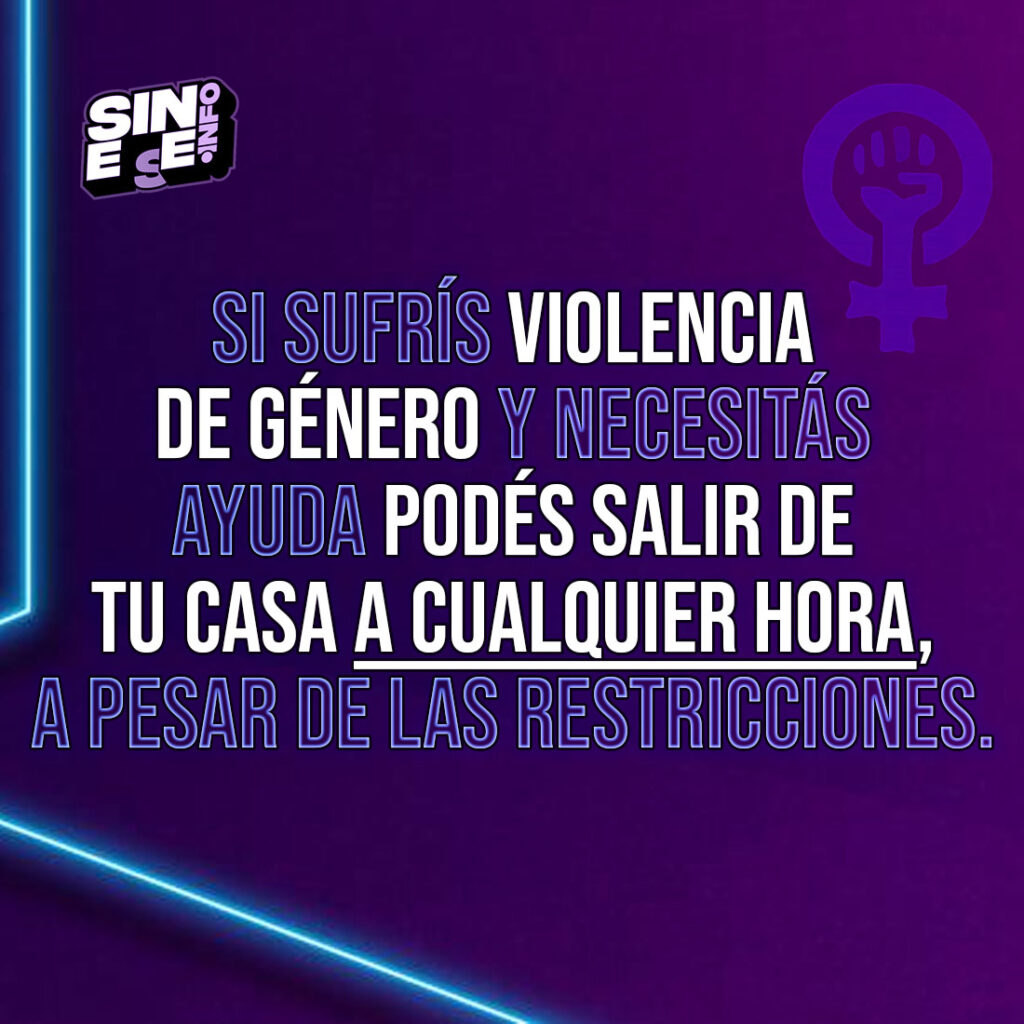 Desde el gobierno provincial recordaron que, a pesar de las restricciones vigentes a la circulación, quienes sufran violencia de género y necesiten ayuda o asistencia podrán salir de sus hogares a cualquier hora.