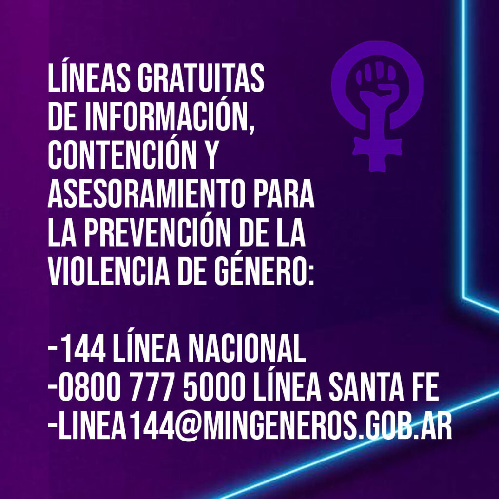 ? ¿Dónde comunicarse? -144 línea nacional -0800 777 5000 línea Santa Fe -linea144@mingeneros.gob.ar O llamá al 911 ante una urgencia.